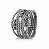 Wir sehen gezwirntes Sterling-Silber, veredelt mit einem rosafarbenen Rhodolith, in Chandelier-Ohrringen und in Anhängern. Emaillierte Ringe, verziert mit gravierten Blumen und geflochtenen Edelmetallen, setzen einzeln oder kombiniert auffällige Akzente. Die wunderschöne Schlichtheit von facettiertem Murano-Glas wird in vollendete Charms verwandelt.