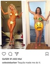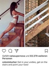 Sie stellt Fotos der Superstars nach und beweist damit viel Sinn für Humor und Mut zum Scheitern.