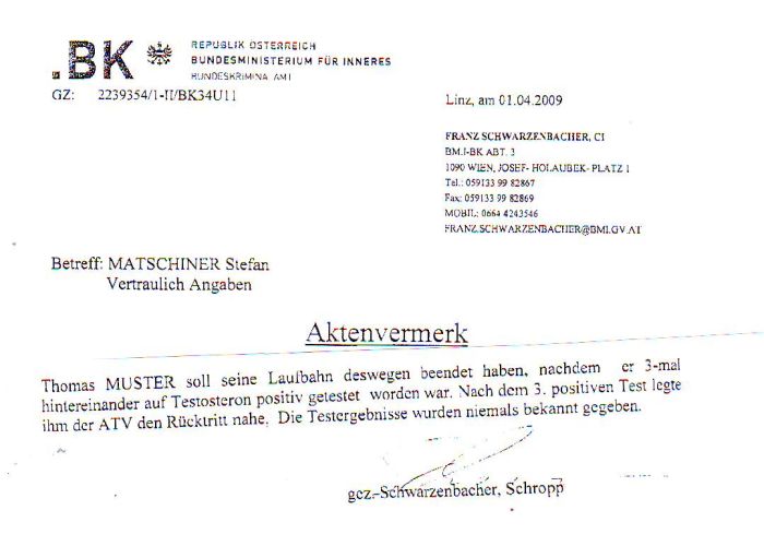 Wir ziehen mit Respekt den Hut vor Maria Fekter, die Amtsmissbrauch bei der SOKO-Doping - vergeblich? - untersagte.