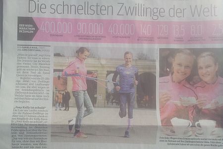 Aus Anlass des Wiener City Marathons am 12.04.2015 wird in der österreichischen Zeitung Kurier, Wien, über Zwillingsschwestern berichtet, die Marathon laufen und wie toll und wie super das ist. Die Eine kann nur zuschauen und mit einer Krücke gehen, weil sie einen Ermüdungsbruch hat.