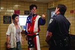 So dürfen wir Nadal und Aladeen, den Zoey als "Alyson Burgers" kennt (erinnert ein wenig an Adam Sandler in You don't mess with the Zohan, der sich den bescheuerten Namen "Scrappy Coco" - wie die zwei Hunde, die er auf seinem Flug nach Amerika trifft - ausdenkt) dabei zusehen, wie sie Aladeen in den Empfang schmuggeln wollen.