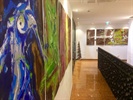 In den Gängen hängen Berglandschaften, gemalt von Herrn Madreiter senior. Daneben galeriewürdige Gemälde auf Metallplatten, die die Themen des Hauses – Löwe, Sport, Wellness – malerisch umsetzen. Wie sich herausstellt, ist der Künstler zum Greifen nahe. Genauer gesagt findet man ihn in der Hotelküche! Der Koch des Hauses weiß nicht nur gekonnt den Kochlöffel, sondern auch den Pinsel zu schwingen.