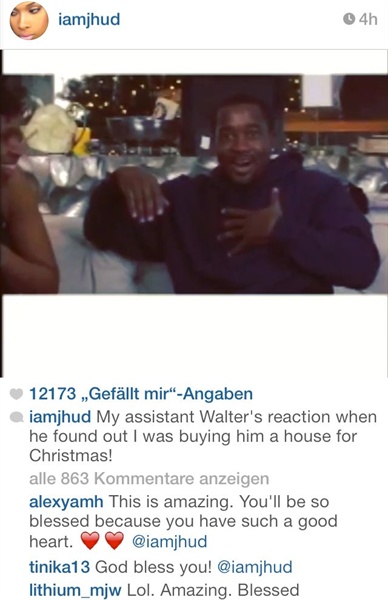 Da war wohl jemand sehr, sehr brav im vergangenen Jahr. Jennifer Hudson postet auf Instagram ein Video, mit welchem wir den Moment mitverfolgen können, in jenem ihr Assistent Walter realisiert, dass er ein Haus von seiner Chefin geschenkt bekommen hat.