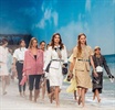 Karl Lagerfeld hatte Lust auf Meer. Er verlegte den Strand samt sanftem Wellengeplätscher ins Grand Palais in Paris. Die Kollektion ist très Chanel! Strohüte und überkreuz getragene zwei Taschen bestechen den Look.