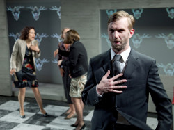 Das Theaterstück „Liebe und Geld“ strotzt vor heißen, erotischen Szenen, auf die die Zuschauer bei der Premiere mal angespannt, mal mit einem Lachen reagierten. Gespielte Gefühle, gespielte Emotionen spielten sich in der Aufführung ab. „Man spielt das, was im Szenario vorgeschrieben ist und mit dem Spiel kommt dann auch von alleine das Gefühl. Man spielt sich sozusagen ein. Manche Schauspieler denken an irgendwas, was sie traurig, glücklich macht, ich aber nicht, denn es ist auch falsch so“, sagt Steffi Krautz (Val in „Liebe und Geld“). „Reibungen und keine Übereinstimmungen der Chemie und Charaktere unter den Schauspielern sind häufig, nur nicht entscheidend, denn wer was spielt, wird auch für uns entschieden. Der einzige Punkt, wo man aufpassen sollte: eine geschiedene Frau nie in ein Stück zusammen mit einer anderen Frau, die ein Verhältnis mit dem Ex spielt, zusammenbringen.“