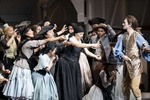 Dafür hat es sich Almaviva zum Hobby gemacht, eine Schürze nach der anderen zu jagen. Aktuell gilt sein gesteigertes Interesse Susanna (Tetiana Miyus), Figaros Verlobten. Dabei steht aber die Figaros Hochzeit ins Haus! Dann kommt noch der liebestollte Jüngling Cherubino (Anna Brull) dazu, der der Gräfin an die Wäsche will. Marcellina (Yuan Zhang) will wiederum Figaro zur Ehe mit ihr nötigen, wird aber letztlich zusammen mit ihrem Liebhaber Bartolo (Wilfried Zelinka) zu Eltern. Das Drama nimmt seinen Lauf.